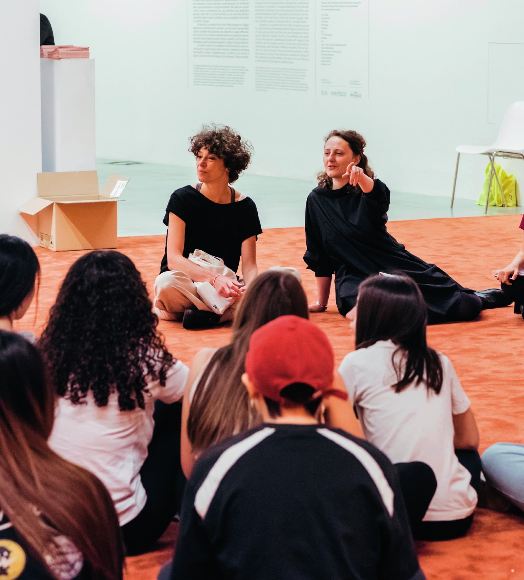 In questi incontri si lavorano due opere selezionate, esplorandole attraverso i sensi, favorendo un’esperienza condivisa. Poi ci sono i campus per i bambini dai 6 agli 11 anni e i workshop per i ragazzi dai 12 ai 14 anni e dai 15 ai 18. La struttura dei laboratori è flessibile: si passa da attività di gruppo a momenti individuali o a coppie, in modo da stimolare i partecipanti da più angolazioni. Un principio fondamentale è l’inclusività: tutti i bambini e ragazzi sono messi sullo stesso piano, anche chi tende a rimanere più in disparte. Non ci sono figure passive, e anche gli insegnanti delle scolaresche vengono coinvolti attivamente, creando un ambiente orizzontale e partecipativo.