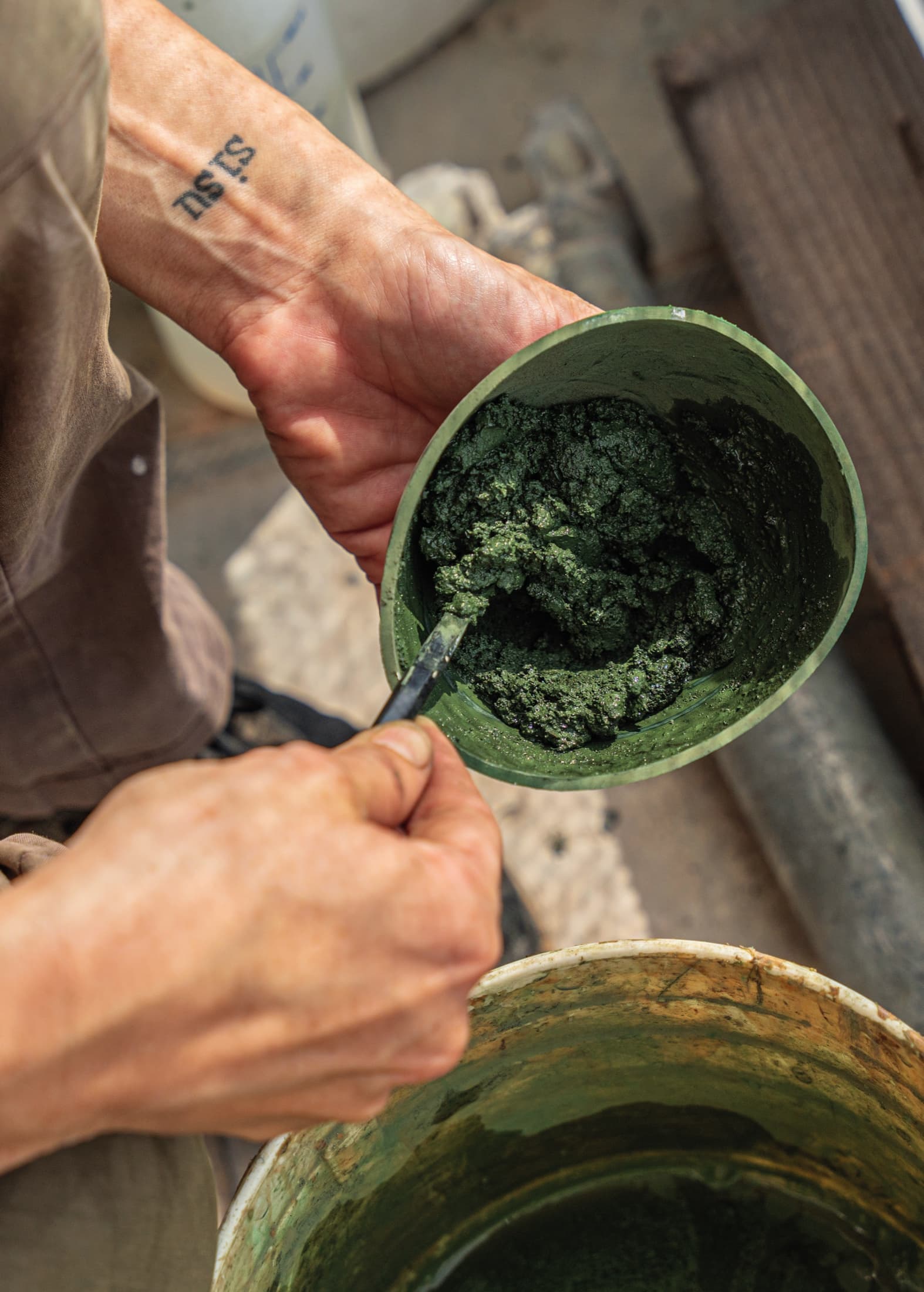 La preparazione dei pigmenti naturali è un rito antico che continua a vivere nei laboratori Piacenti. Tecnica, conoscenza dei materiali e cura artigianale si fondono per restituire autenticità cromatica alle superfici.