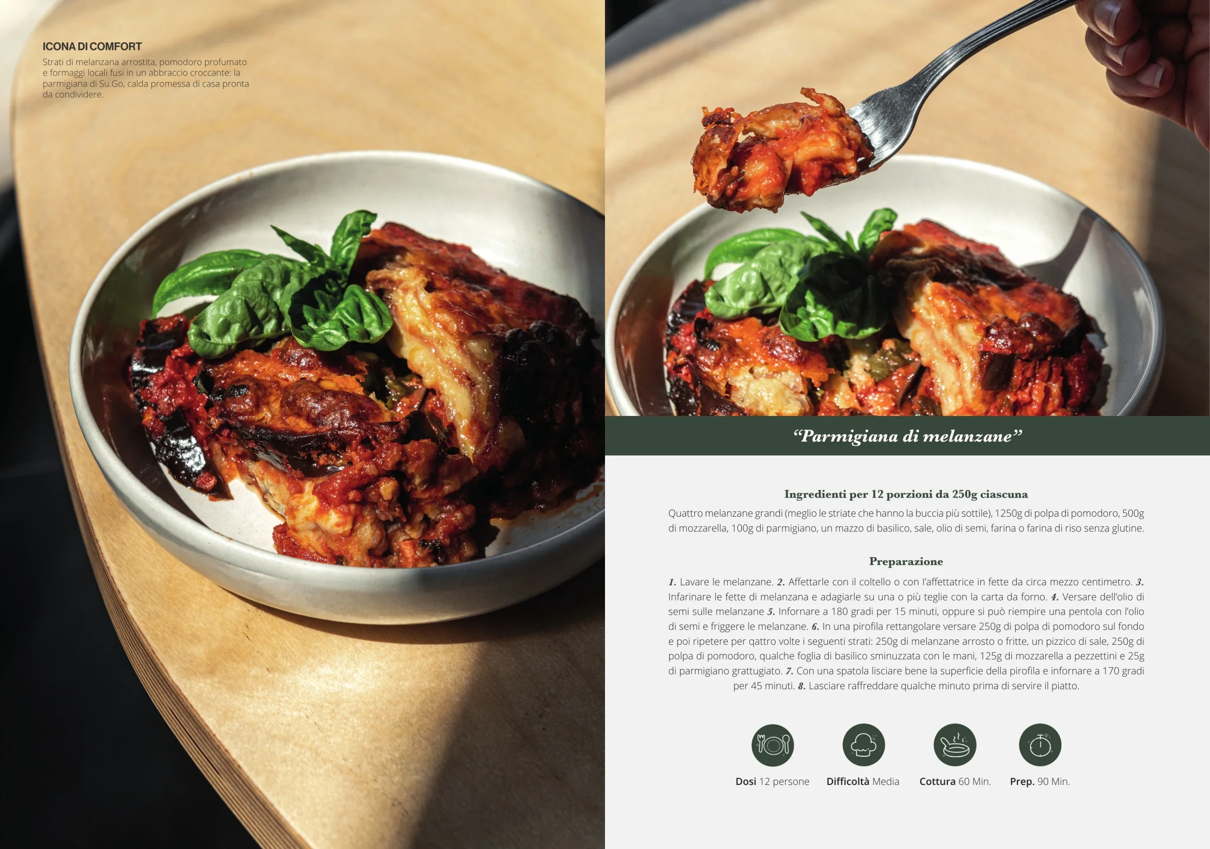 Strati sottili di melanzane biologiche leggermente arrostite, passata di pomodoro “come da nonna”, basilico fresco e un mix di formaggi locali: un comfort food che lo chef rifinisce con una gratinatura croccante, perfetta da rigenerare a casa senza perdere fragranza. La ricetta, confezionata sottovuoto in vaschette compostabili, resta intatta in frigorifero fino a due settimane. Un piccolo lusso quotidiano per chi ha poco tempo ma non vuole rinunciare alla qualità.